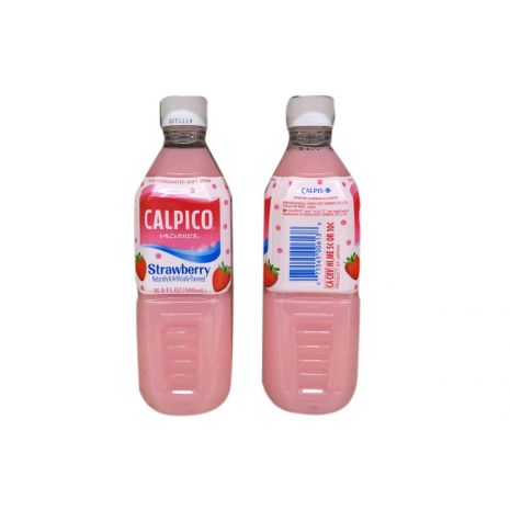 Calpico Strawberry Naturally and Artificially Flavor in 16.9 fl oz (500 ml) bottle. Product of Japan. Calpico is a very unique non-carbonated soft drink made with a milk base. It’s very popular in Japan, and the drink typically contains lactobacillus which is very helpful in digestion. This one is flavored with strawberry, giving it a sweeter, fruity taste to it.