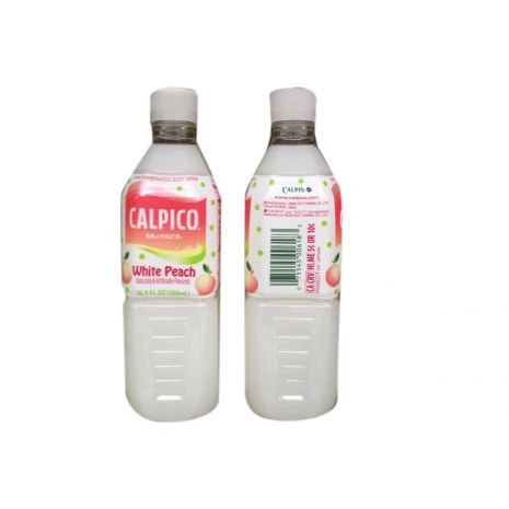 Calpico White Peach Naturally and Artificially Flavor in 16.9 fl oz (500 ml) bottle. Product of Japan. Refreshing and light, sweet and tangy with a hint of White Peach & yogurt flavors. CALPICO is a non-carbonate soft drink made from milk and lactobacilli which is helpful in digestion. Contains 1% Juice.