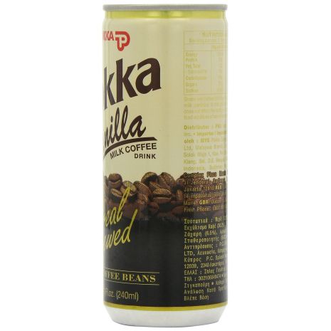 Pokka Vanilla Milk Coffee Drink in 8.1 fl oz (240 ml) can. Product of Singapore. A can of vanilla milk coffee from super drink brand Pokka. Pokka have been brewing popular canned coffee in Japan for many years, this ‘real brewed’ series is specially aimed at coffee lovers with its rich coffee made from freshly ground coffee beans. Enjoy this can of vanilla milk coffee hot or cold.