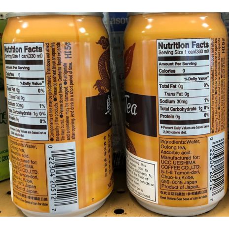 UCC is one of the top coffee and tea beverage companies in Japan. This canned oolong tea is unsweetened with no artificial coloring.