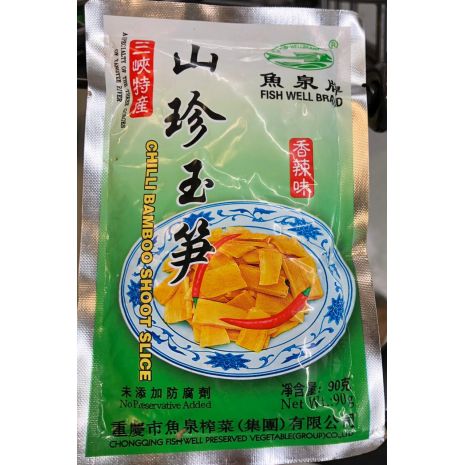 No Added PreservativesThis product is made of the bamboo shoot of the region of the 'Three Gorges Of Yangtze River'. It is delicious and it has a delicate fragrance. It's easy to open the bag. It's a delicious refreshment in your home, during your trip.