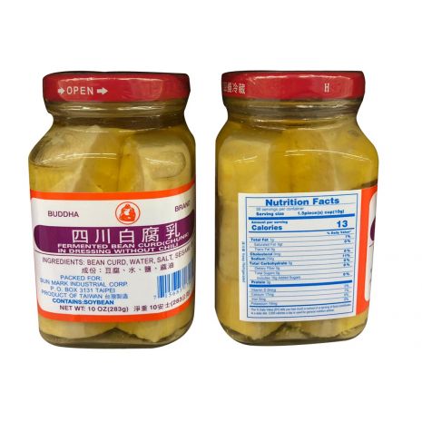 Buddha Brand Fermented BeanCurd Without Chili in 10 oz (283 g) jar. Product of Taiwan.