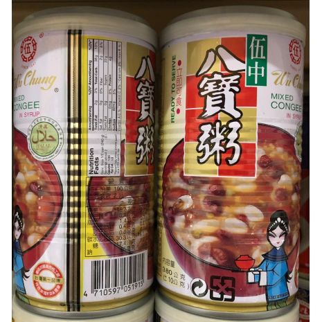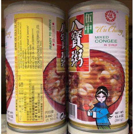 Water, Sugar, Peas, Wheat Flake, Glutinous Rice, Mung Bean, Red Bean, Millet, Peanuts, Longans.