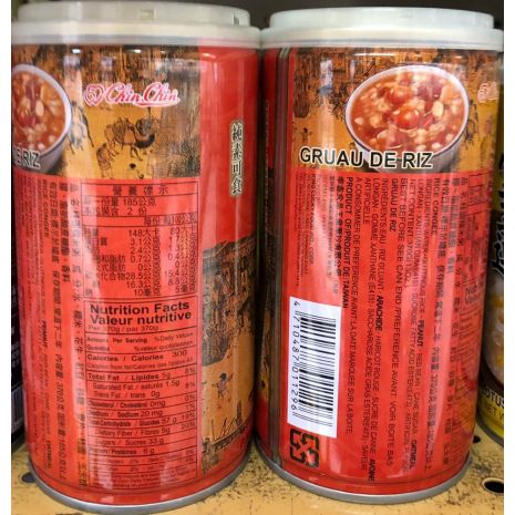 Water, glutinous rice, peanuts, red bean, oatmeal, cane sugar, longan.Allergie: peanuts.