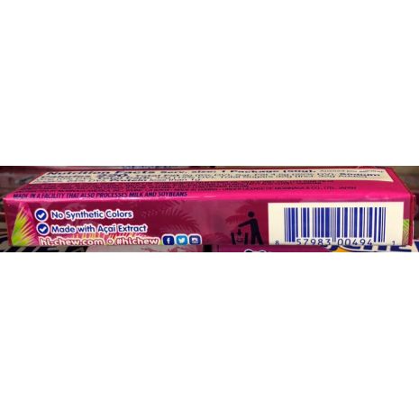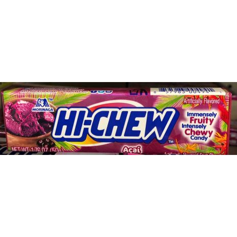 Hi-Chew with acai flavor. This immensely fruity and intensely chewy candy is made with real chia seed. The long-lasting sweet acai flavor and chewy texture make this hi-chew uniquely delicious.