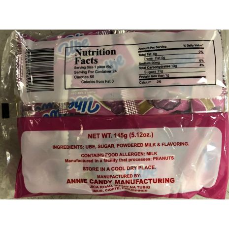 Who loves UBE? Everyone does! Ube is one of the most popular delicacies that can be found in the Philipines. It is a tuberous root vegetable also known as Purple yam. The taste can be the same as potatoes and has less savory flavour. Ube has been used for many things commonly in a culinary or toppings. They are popular to be cooked as a dessert during fiesta and on different occasions. Halo halo is the best dessert that you can have Ube as a topping. It can also be a flavour of a cake or a sticky rice known as suman. We know everyone loves ube ice creams, and Annie's brought you the Annies Ube (Purple Yam) candy that tastes like ice cream but they have it on a candy! Annies Ube knows that we all love purple yam and have it all the time as much as we want to. But not everyone has a time to cook and make an ube ice cream or ube cake so Annies made an Ube flavoured candy for you that you can have all the time anywhere you want! A perfect candy to share for other ube lovers out there!