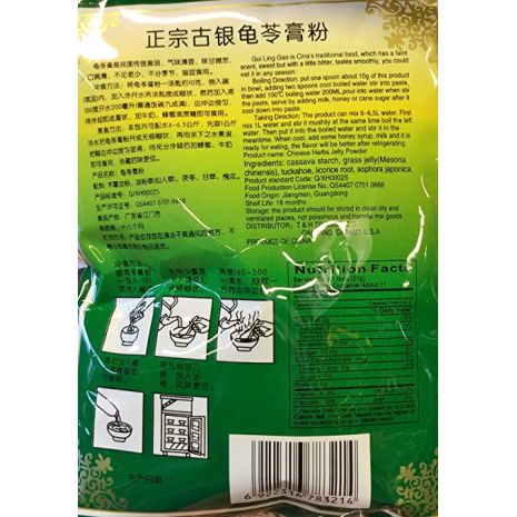 T & H Trading Co Gui Ling Gao Chinese Herbs Jelly Powder in 8.8 oz (250 g) sachet. Product of China. Gui Ling Gao is Chinese's traditional food which has a faint scent, sweet but with a little bitter, tastes smooth. You can eat it in any season.