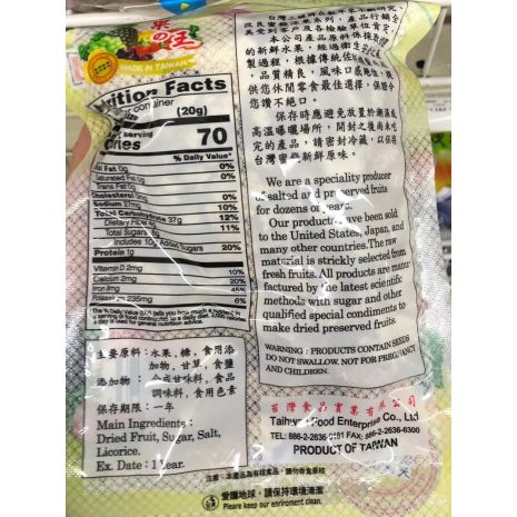 Made of preserved dried Plum, they are sweet, salty, and sour all at the same time. They are a favorite snack and treat in Taiwan.