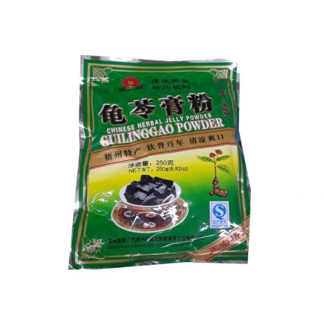 Wuzhou King Three Coins Gui Ling Gao Powder Chinese Herbal Jelly Powder in 8.82 oz (250 g) sachet. Product of China. Wuzhou King Three Coins Guilinggao Powder, Chinese Herbal Jelly Powder.